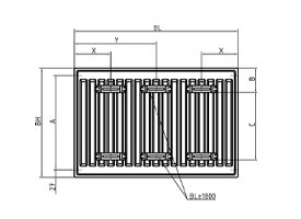 На задней стороне радиатора располагаются монтажные ушки для крепления настенного кронштейна. От длины 1800 мм и более у данного типа радиатора 3 пары монтажных ушек.